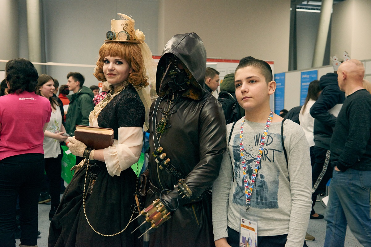 В этот раз на форуме можно было увидеть множество стильных фантастических героев, в том числе персонажей «Звездных войн», с которыми можно было сфотографироваться, в том числе и в формате 3D. В их роли выступили представители первого российского постапокалиптического клуба After Us, общества «МосСтим» («Московское общество стимпанка»), а также ребята, которые еще учатся в школе и в университете.